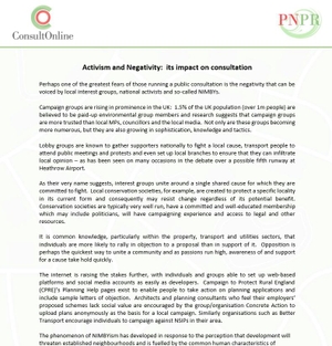 To receive our white paper, Activism and Negativity – its Impact on Consultation please email ConsultOnline